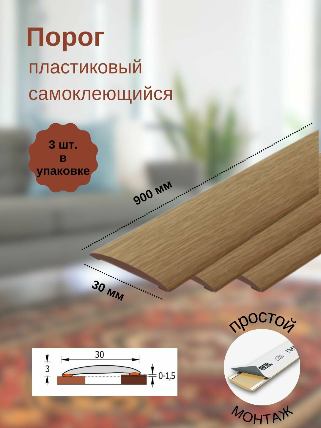 Порог самоклеящийся из пластика 3шт. ИЗИ 30.900.229 для напольных покрытий; Дуб латте 30 х 900 мм