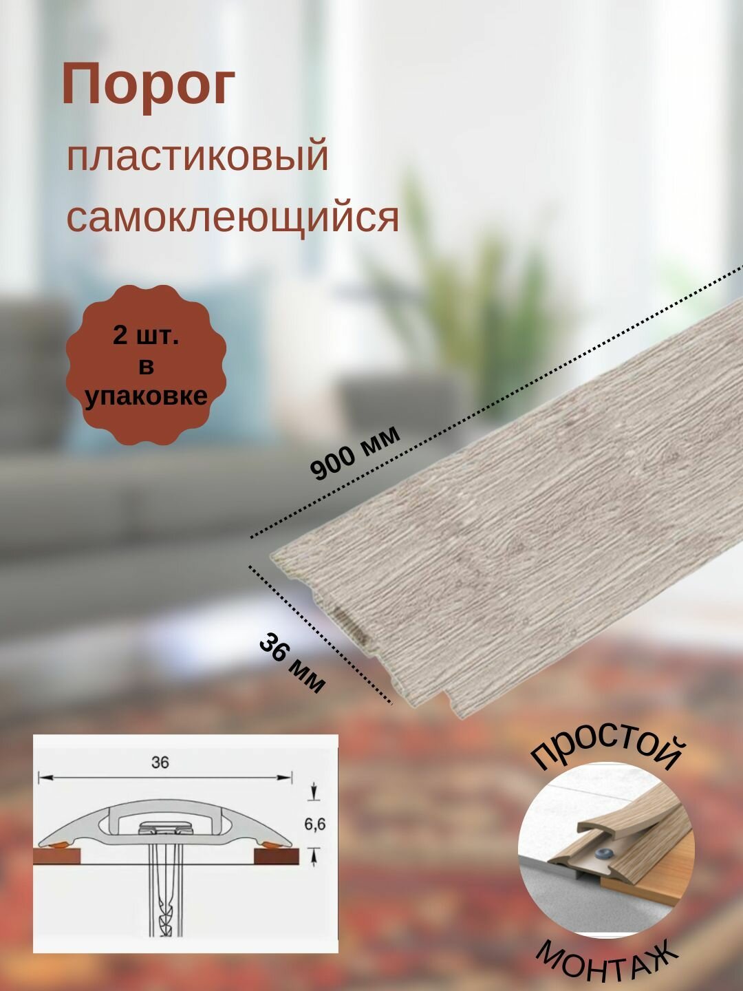 Порог ПВХ самоклеящийся 900х36 мм дуб северный, 1 шт. в заказе