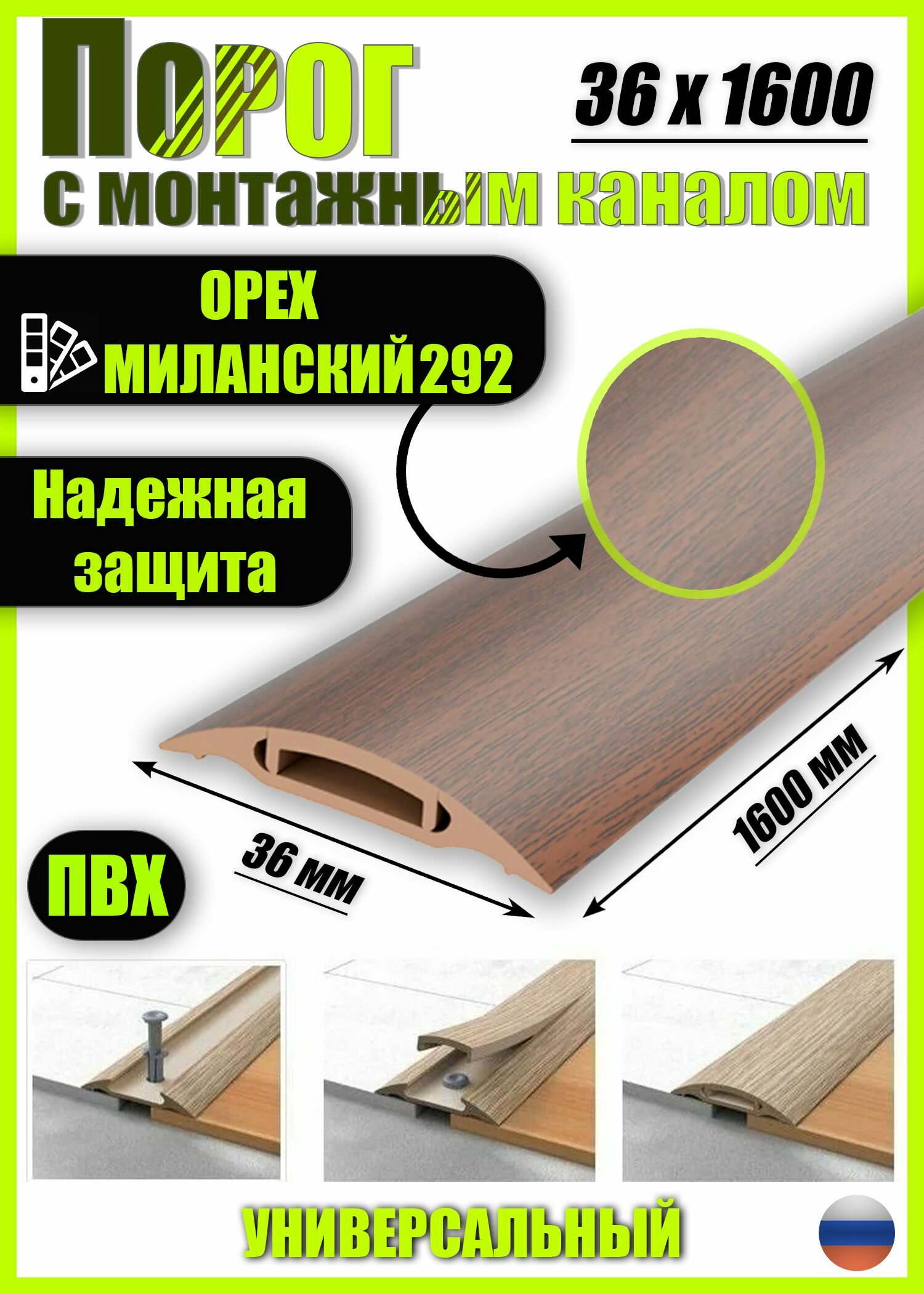 СохранитьПорог с монтажным каналом из пластика ПМК 36.1600.292 для напольных покрытий; Орех миланских 36 х 1600мм интересное: