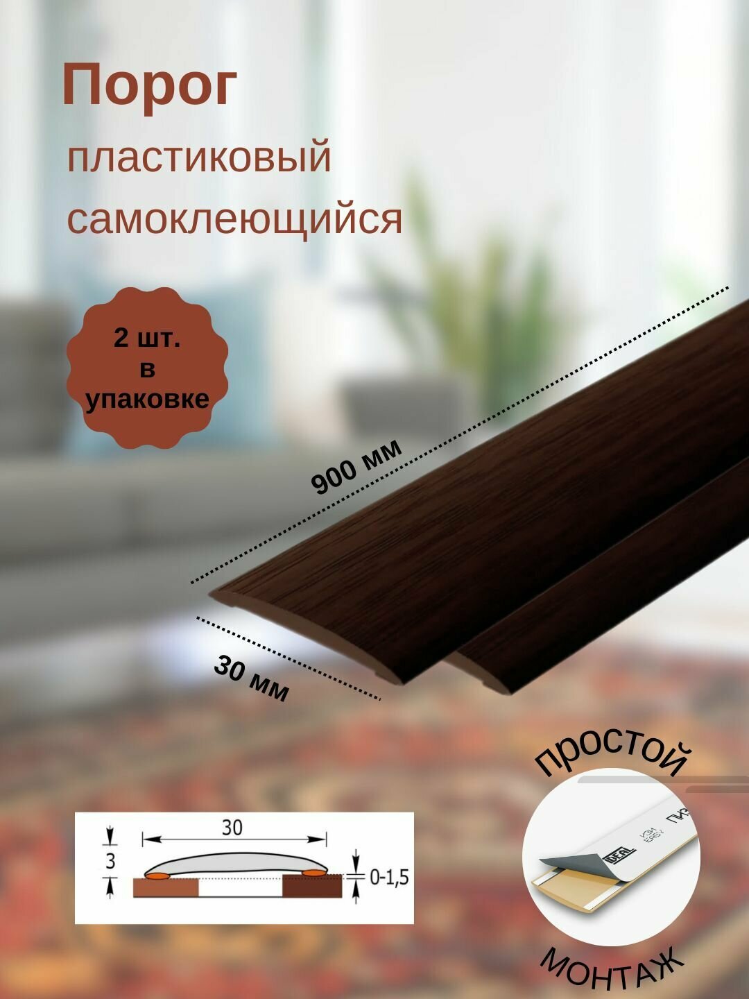 Порог самоклеящийся из пластика 3шт. ИЗИ 30.900.208 для напольных покрытий; Дуб мокко 30 х 900 мм