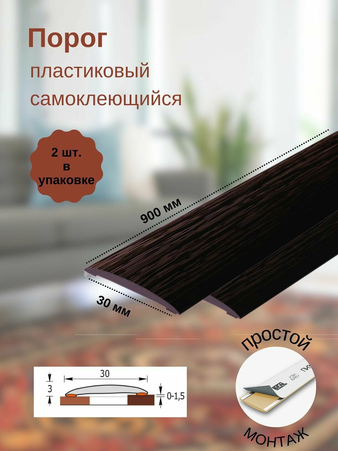 СохранитьПорог ИЗИ 302 венге черный, 30x900 мм, самоклеющийся пластиковый, 2 шт. интересное: