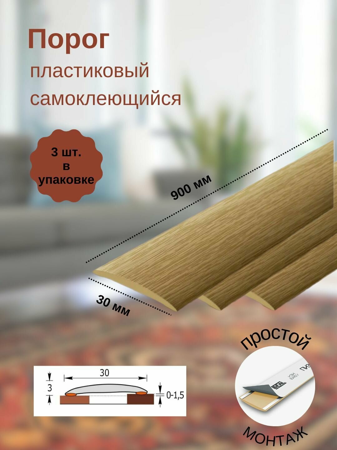 СохранитьПорог ИЗИ 212 дуб светлый, 30x900 мм, самоклеющийся пластиковый, 3 шт. интересное: