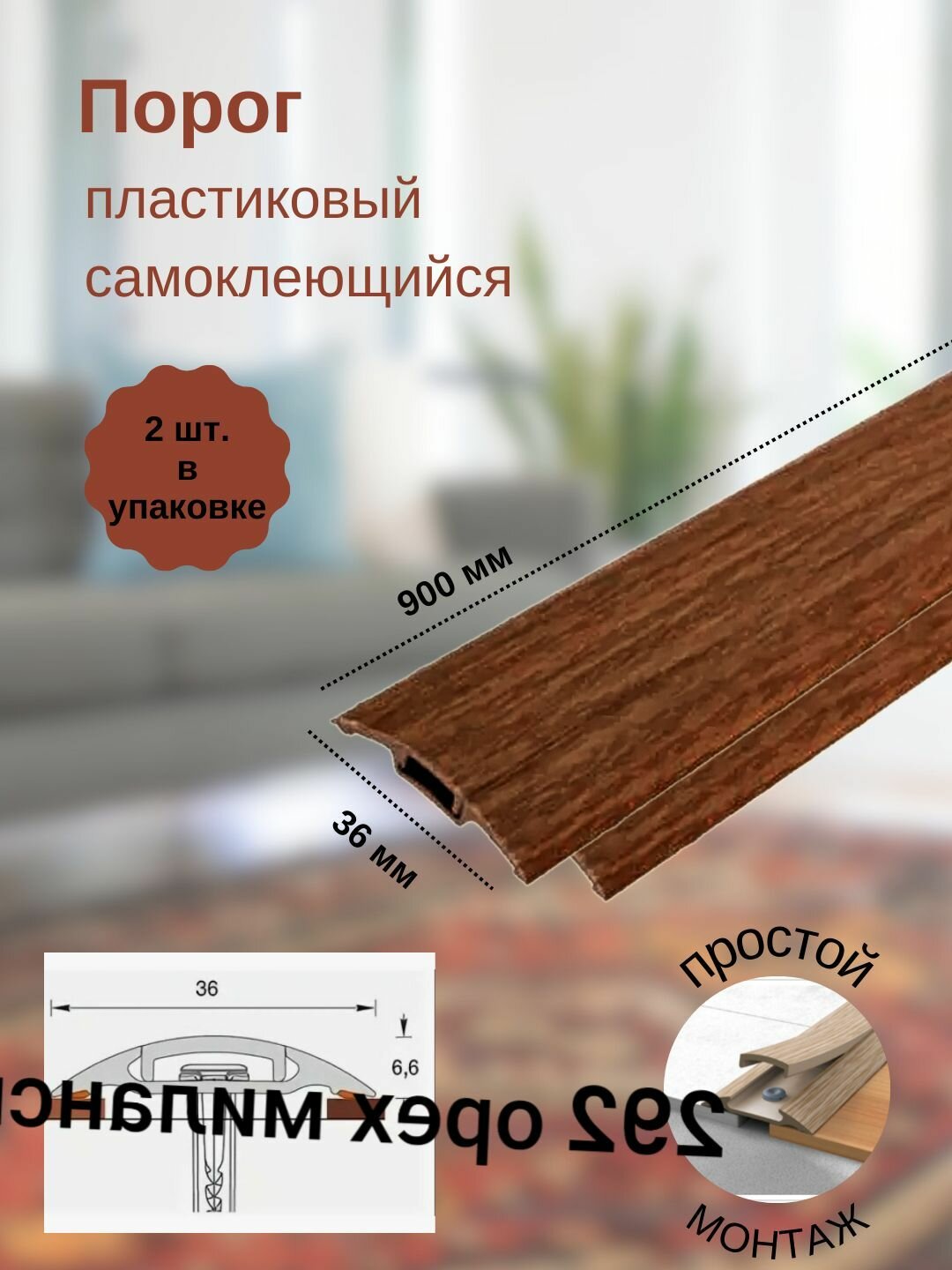 Порог с монтажным каналом 36мм 0,9м "Идеал" 292 Орех миланский