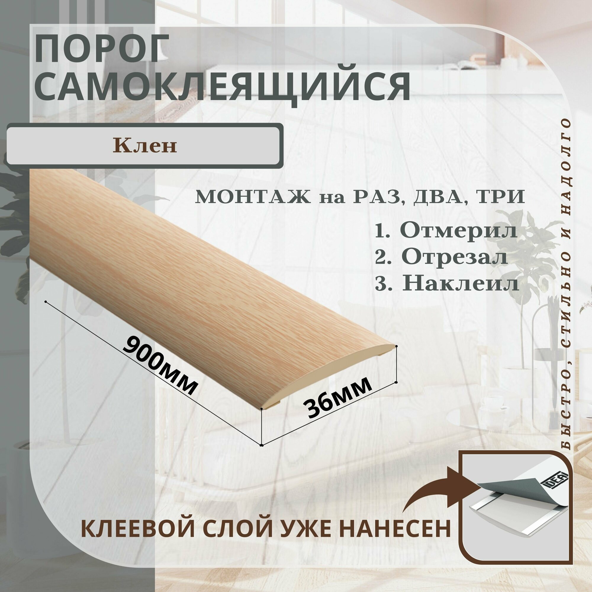 Порог для пола самоклеющийся идеал (IDEAL) длина 900 мм, ширина 36 мм, 267 Клен белый
