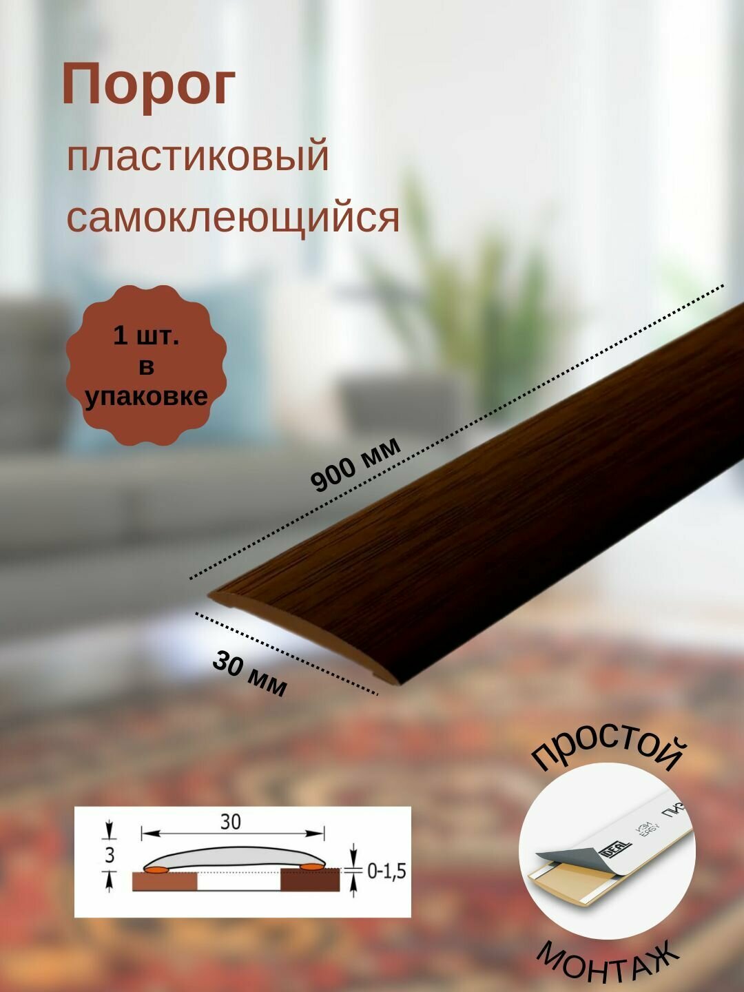 СохранитьПорог ИЗИ 351 каштан, 30x900 мм, самоклеющийся пластиковый, 1 шт. интересное: