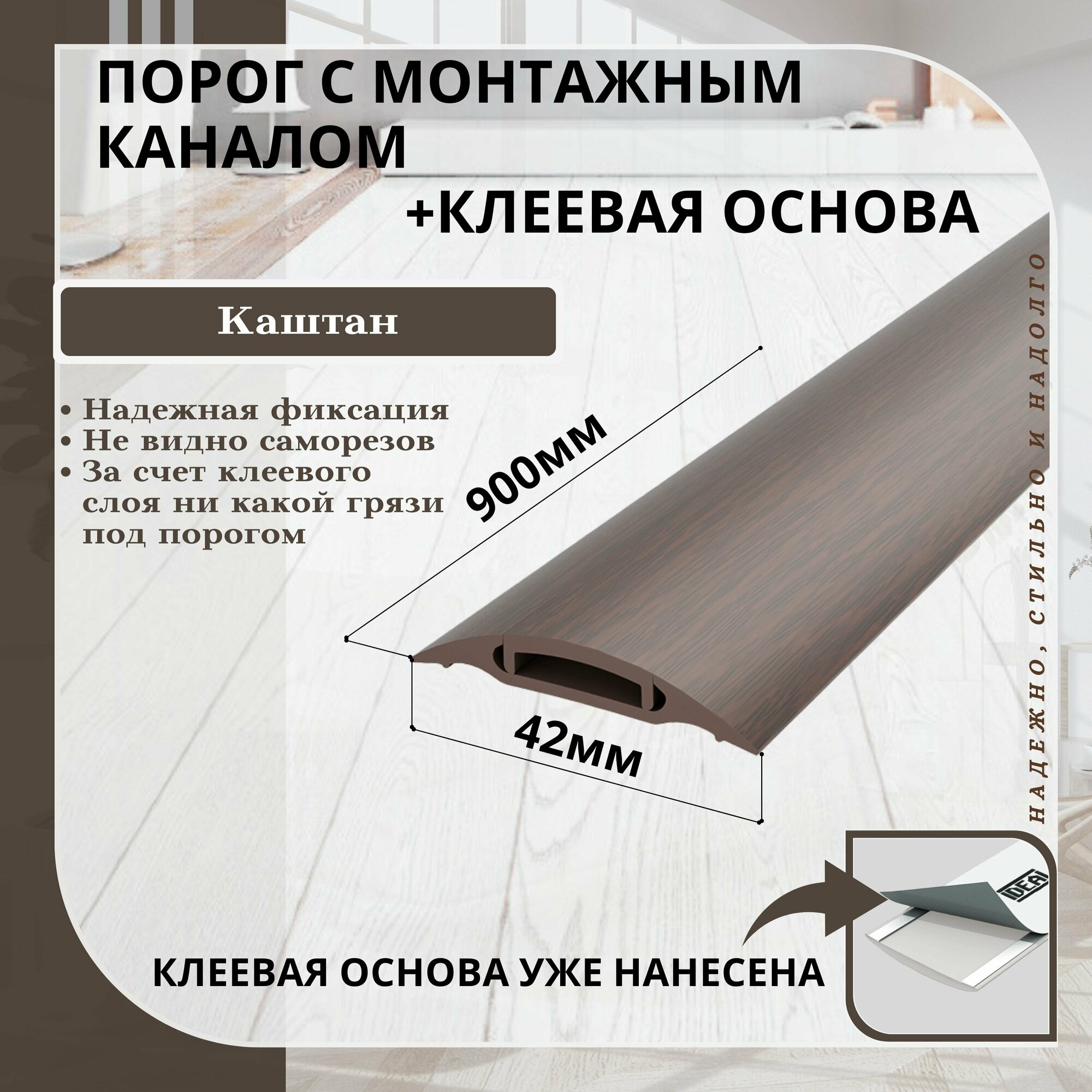 Порог для пола с монтажным каналом идеал (IDEAL) длина 900 мм, ширина 42 мм, 351 Каштан