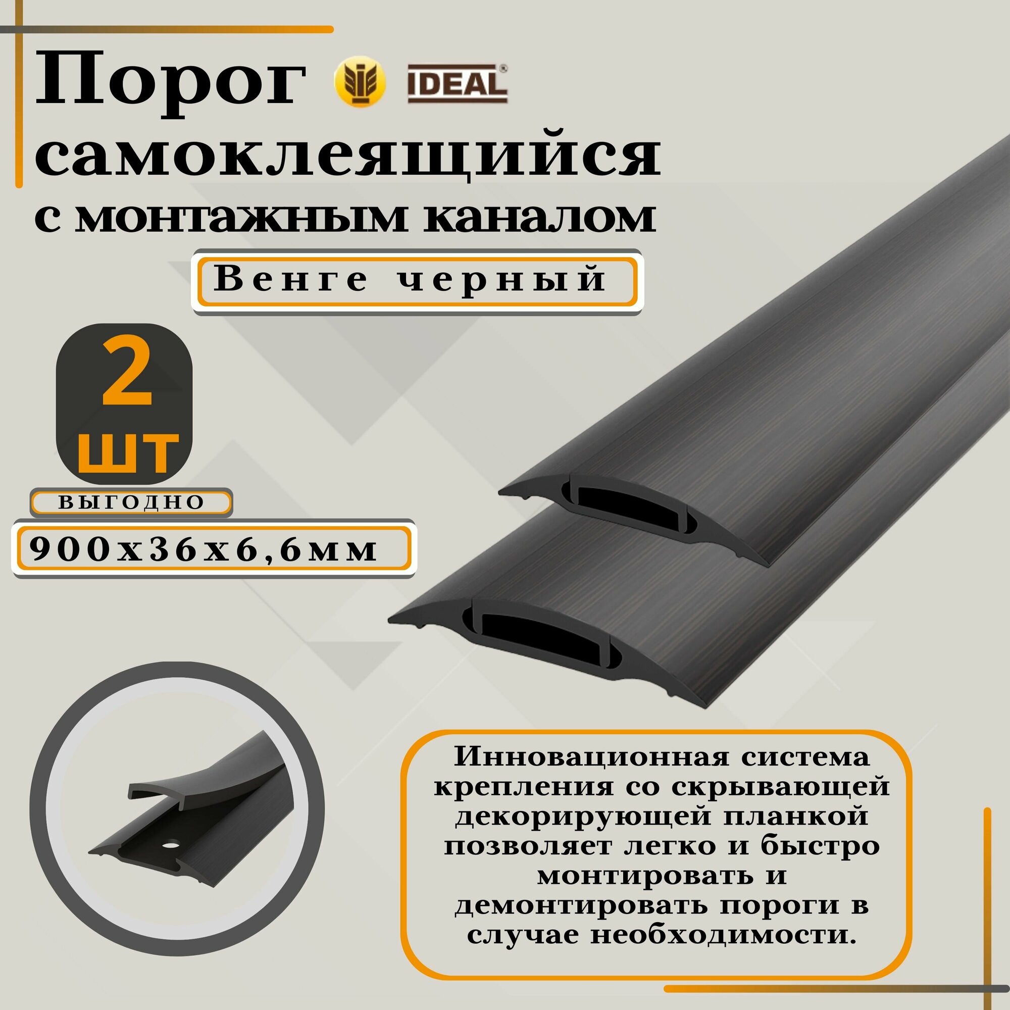 СохранитьПорог с монтажным каналом, 302 Венге черный, пластиковый, 36x900 мм, 2 шт. интересное: