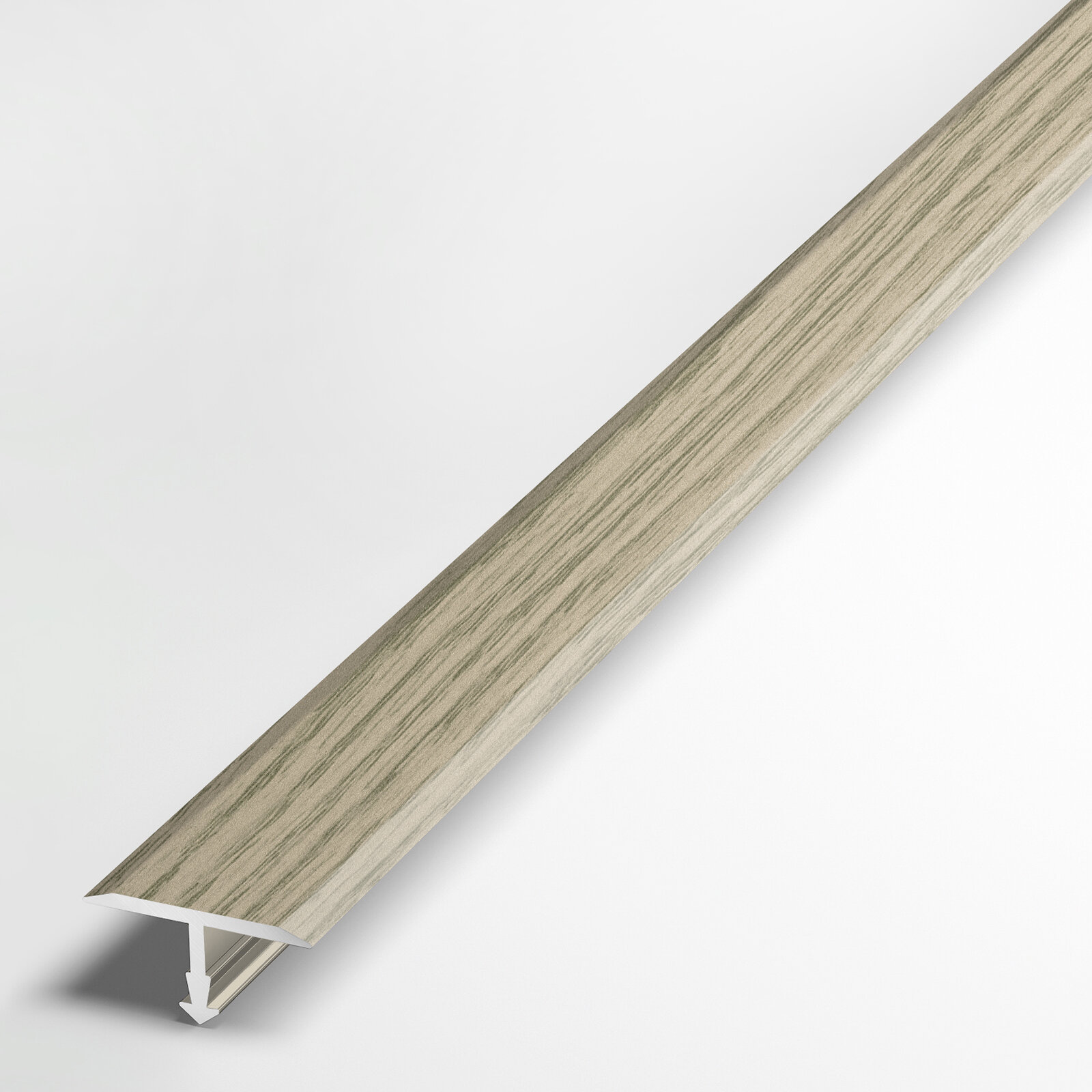 Порожек Т-образный алюминиевый гибкий для напольных покрытий, ширина 20мм, длина 2,7м лука ламинированный ЛС 10.2700.4046 (Дуб мелфорд грей)