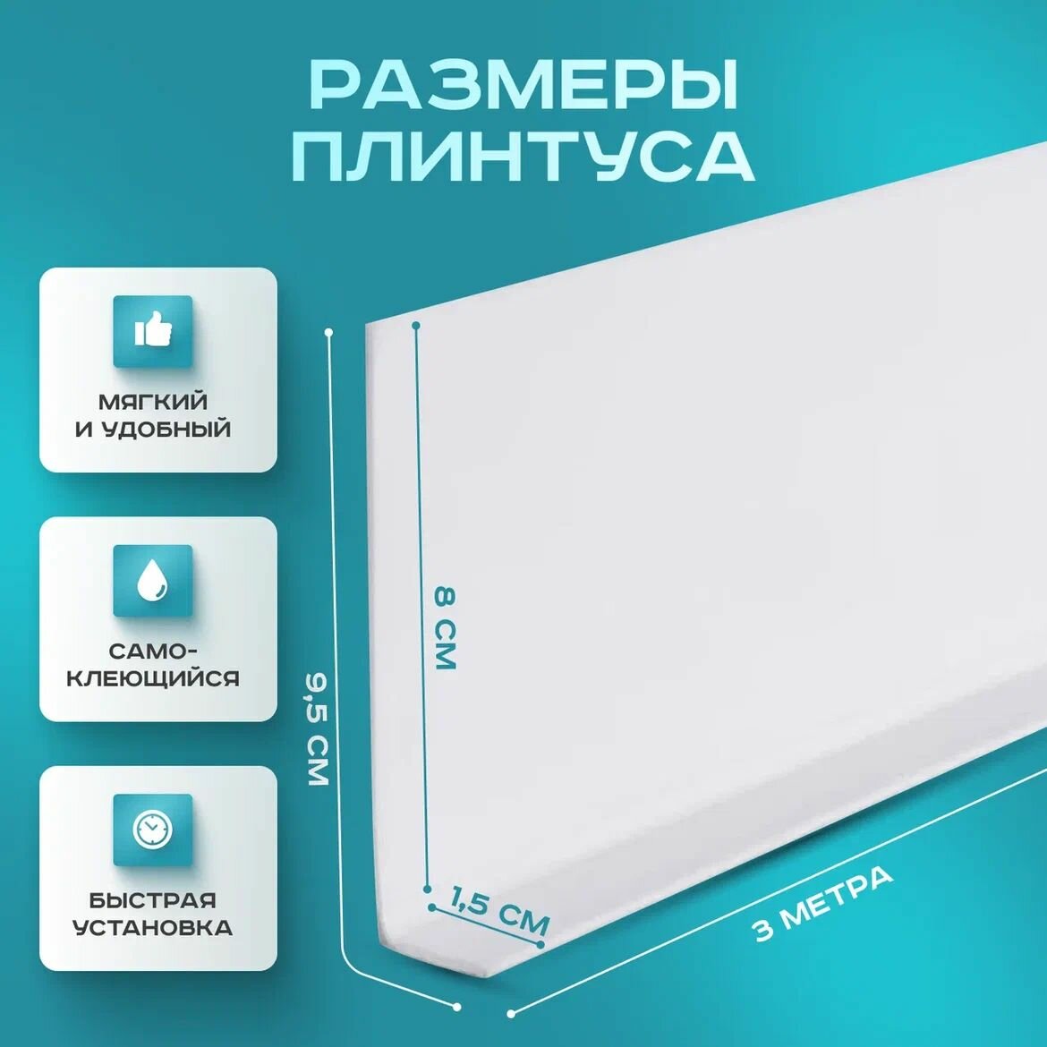 СохранитьПлинтус гибкий напольный самоклеящийся, 95мм х 3м, белый, гибкий плинтус для пола. интересное: