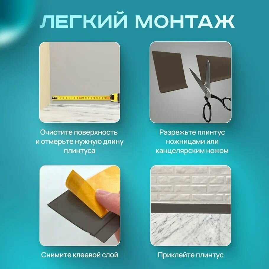 Плинтус гибкий напольный самоклеящийся, 65мм х 3м, графит, гибкий плинтус для пола.