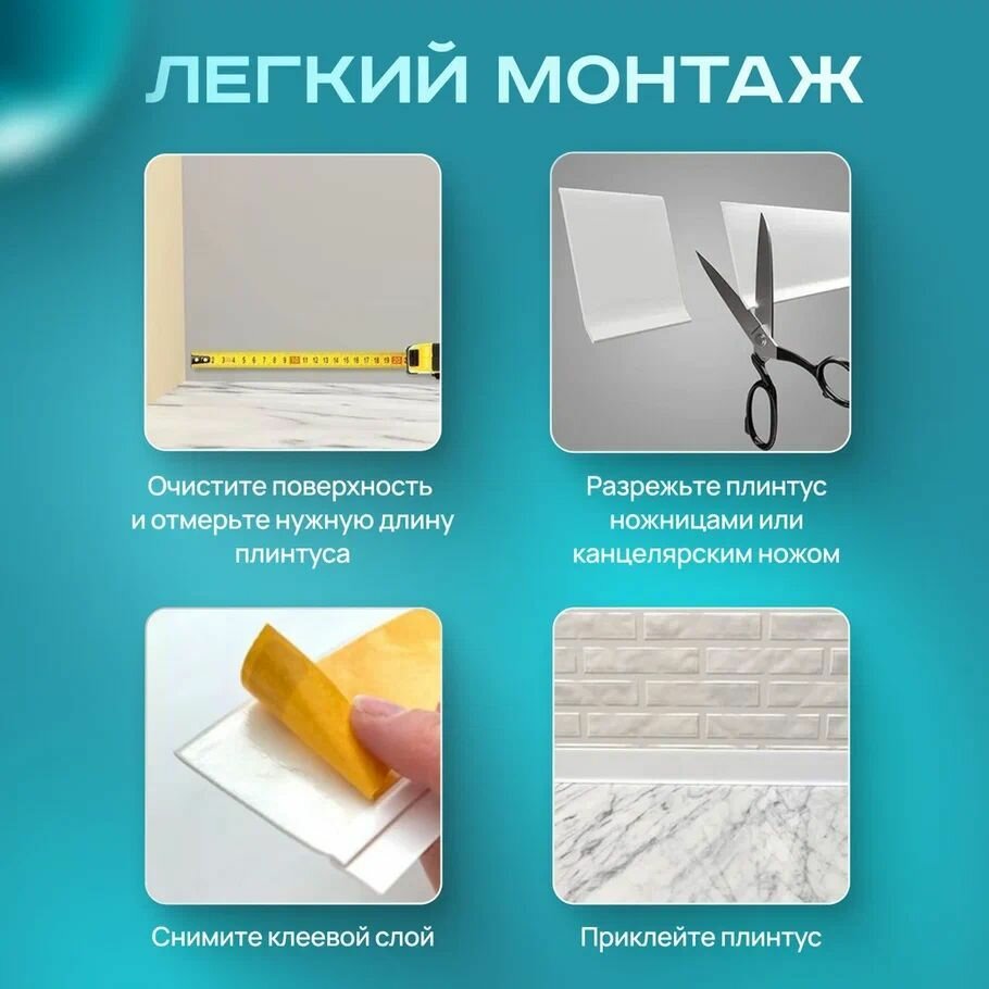 Плинтус гибкий напольный самоклеящийся, 65мм х 3м, белый, гибкий плинтус для пола.