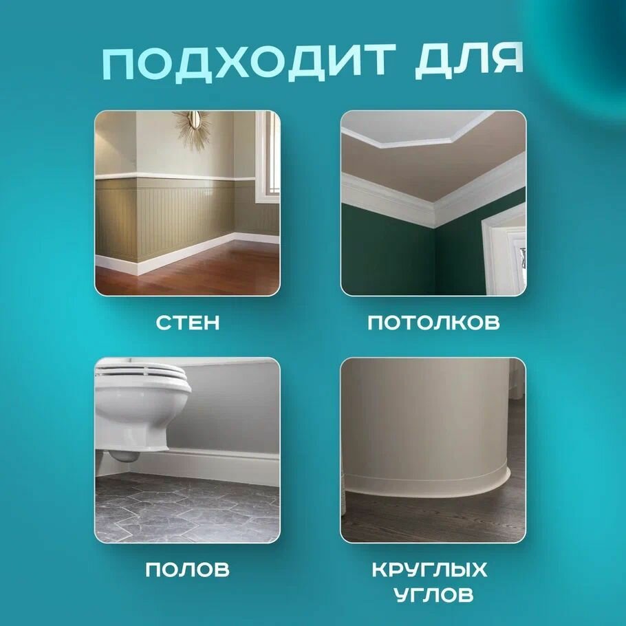 Плинтус гибкий напольный самоклеящийся, 95мм х 5м, белый, гибкий плинтус для пола.
