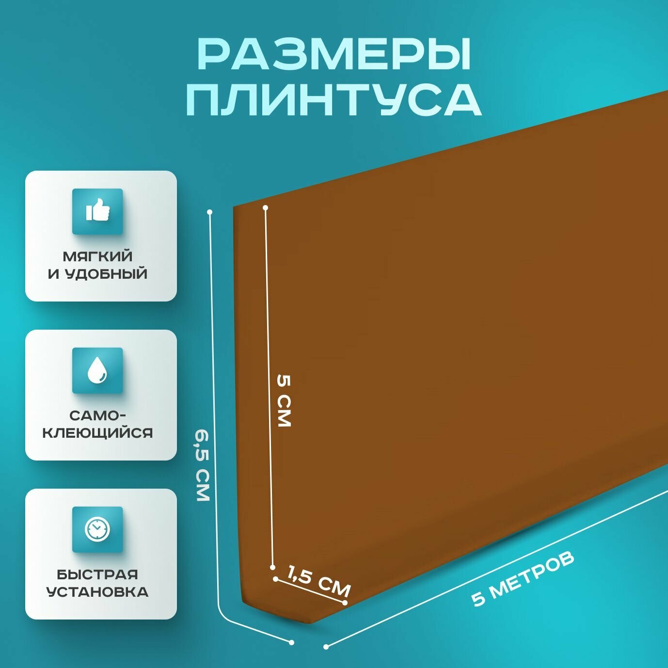 Плинтус гибкий напольный самоклеящийся, 65мм х 3м, коричневый, гибкий плинтус для пола.