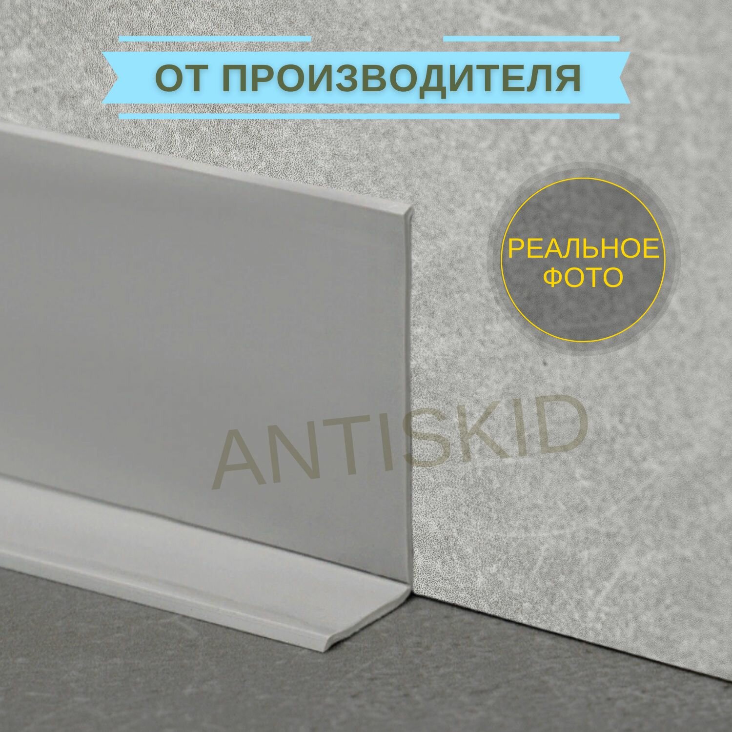 Плинтус гибкий напольный самоклеящийся, 95мм х 3м, светло-серый, гибкий плинтус для пола.