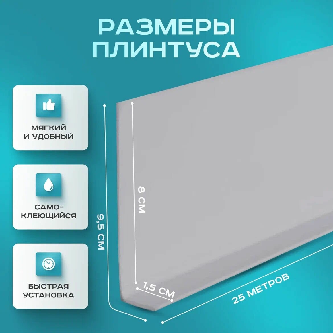 Плинтус гибкий напольный самоклеящийся, 95мм х 3м, серый, гибкий плинтус для пола.