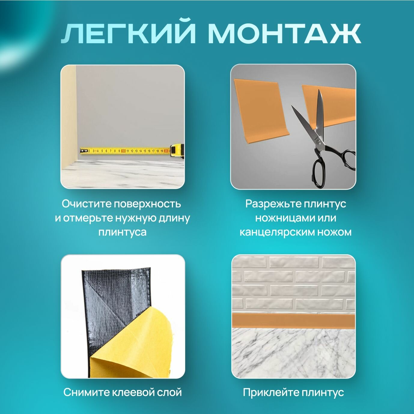 Плинтус гибкий напольный самоклеящийся, 65мм х 3м, чёрный, гибкий плинтус для пола.