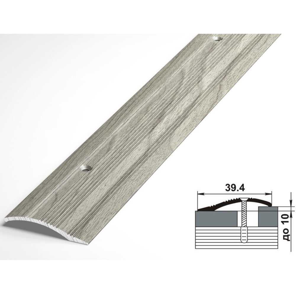 Порог напольный разноуровневый 40х10 мм, длина 2,7 м, профиль-порожек алюминиевый Лука ПР 02, декор дуб арктик 105