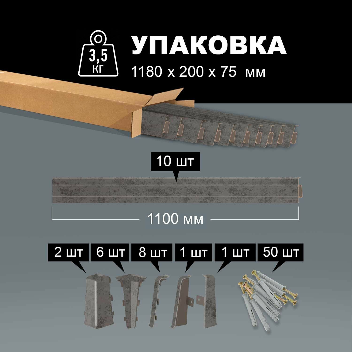 Плинтус напольный 1100 х 72,5 мм , 10шт , с кабель-каналом , цвет Ясень Серый