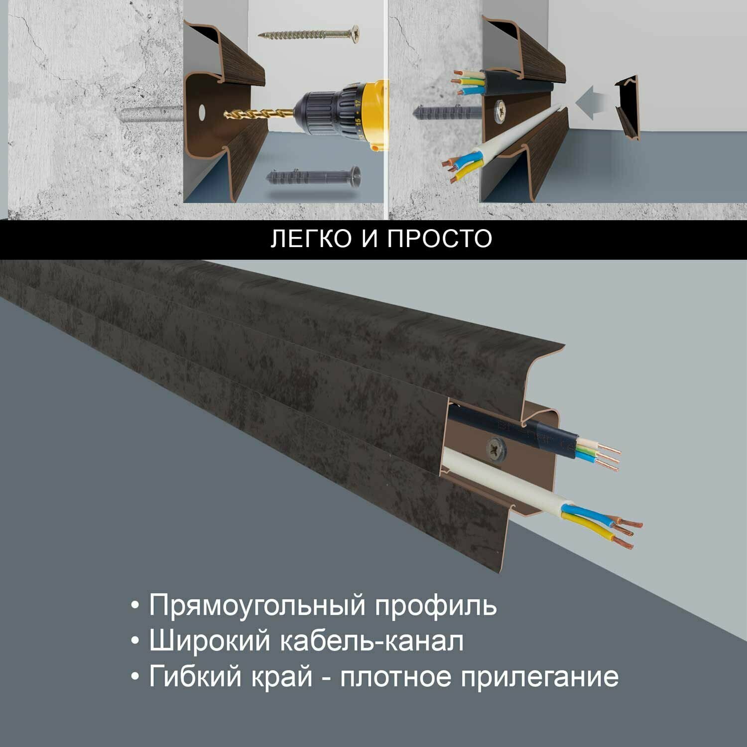 Плинтус напольный 1100 х 75 мм , 10шт , с кабель-каналом , цвет Дуб Каменный