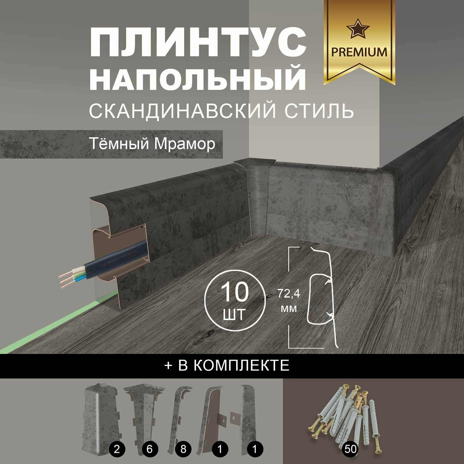Купить Плинтус напольный 1100 х 72,5 мм , 10шт , с кабель-каналом , цвет Тёмный Мрамор