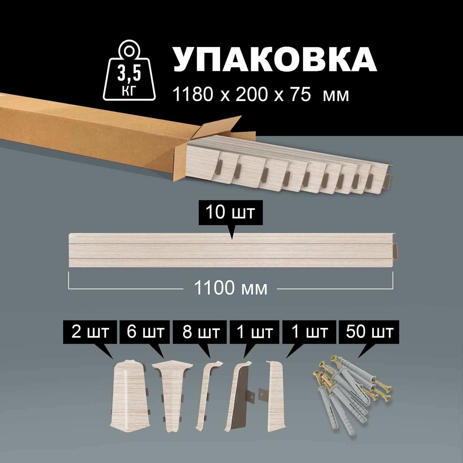 Плинтус напольный 1100 х 75 мм , 10шт , с кабель-каналом , цвет Дуб Джерси