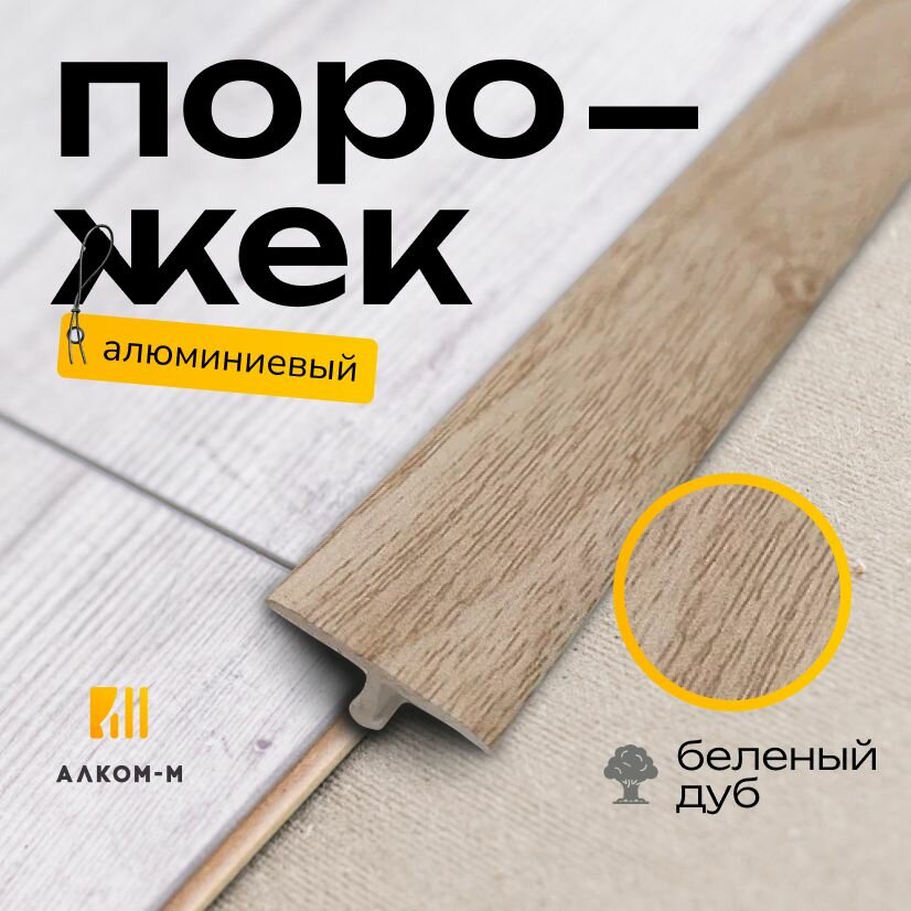Порог алюминиевый Т образный стыкоперекрывающий одноуровневый стык (ПД 09) 18x9 900 мм дуб беленый