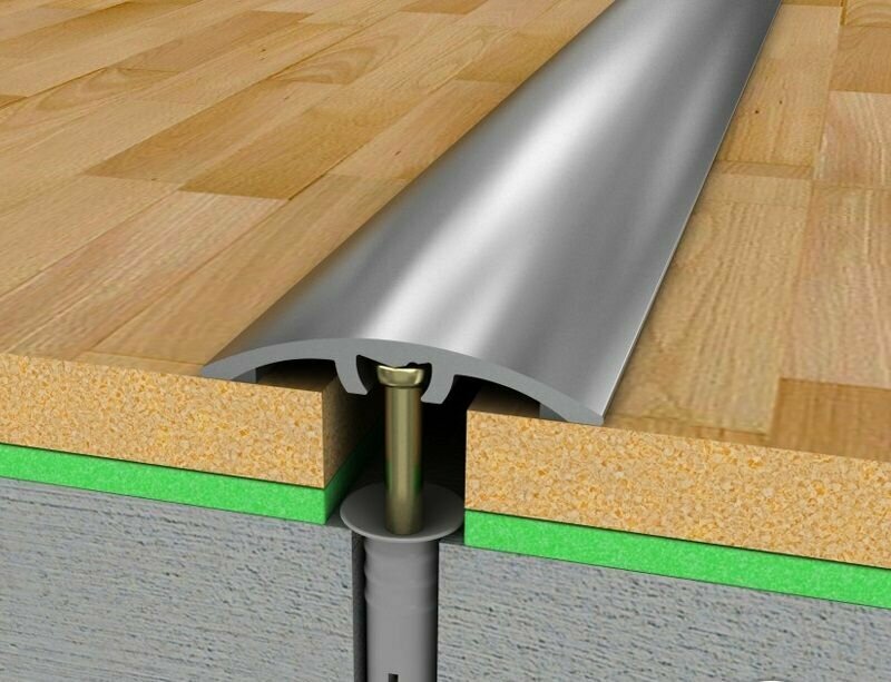 Порог со скрытым креплением напольный стыкоперекрывающий одноуровневый 35 мм, длина 2,7 м, профиль-порожек алюминиевый Лука ПС 04-3, анод серебро 01л