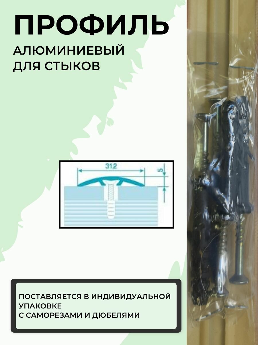Порог со скрытым креплением напольный стыкоперекрывающий одноуровневый 31 мм, длина 1,35 м, профиль-порожек алюминиевый Лука ПС 04-2, анод серебро 01л