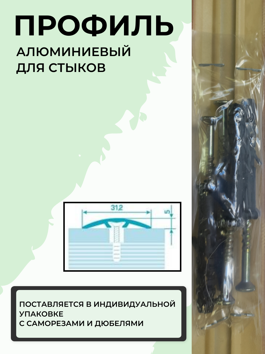 Порог со скрытым креплением напольный стыкоперекрывающий одноуровневый 31 мм, длина 1,35 м, профиль-порожек алюминиевый Лука ПС 04-2, анод серебро 01л