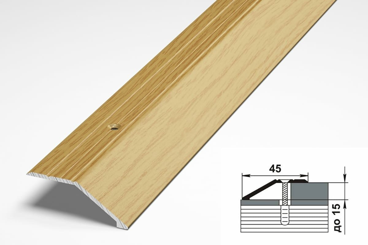 Порог напольный разноуровневый 45х15 мм, длина 1,35 м, профиль-порожек алюминиевый Лука ПР 04, декор дуб светлый 082