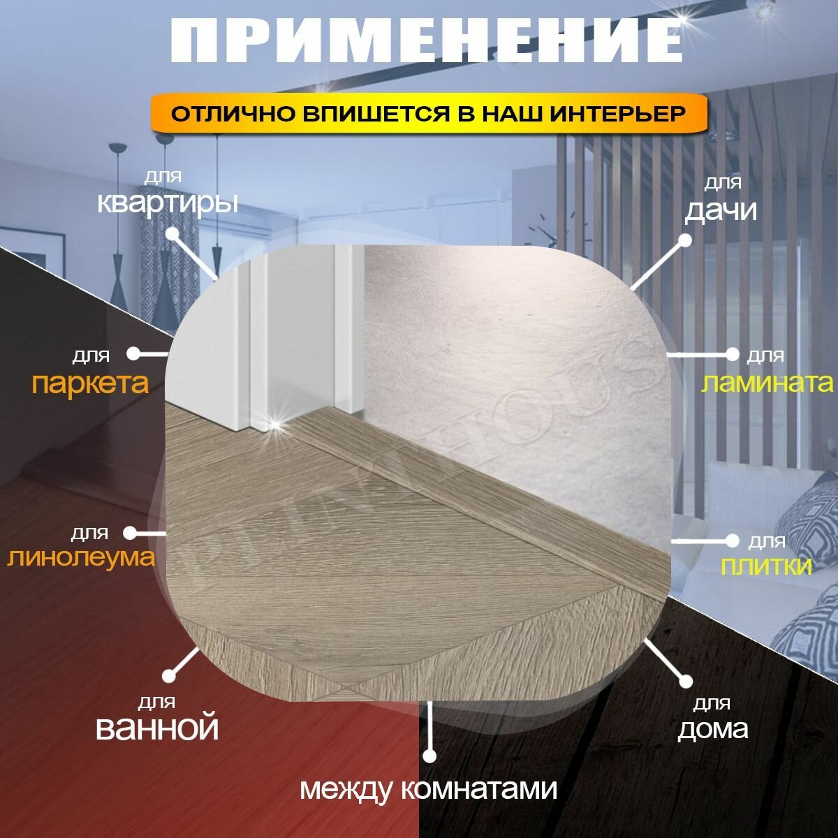 Порог напольный разноуровневый с анодированным покрытием (высокая износоустойчивость)