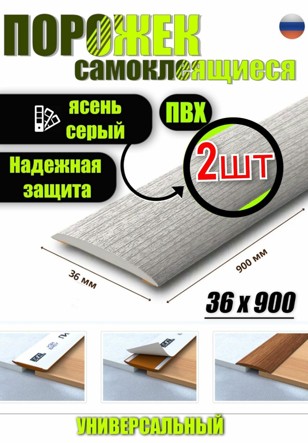 Порог ПВХ самоклеящийся 900х36 мм Ясень серый