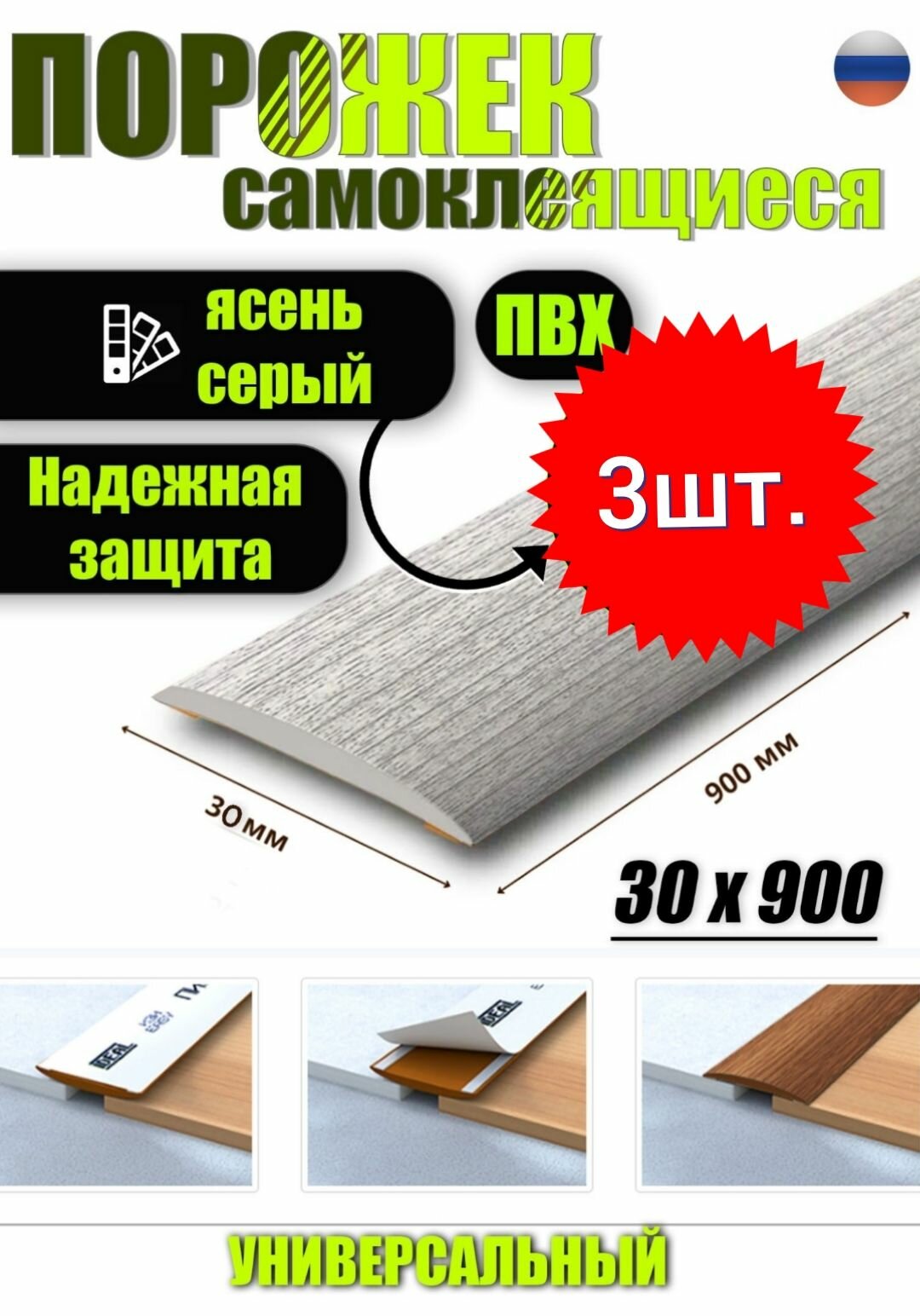 СохранитьПорог самоклеящийся из пластика ИЗИ 30.900.253 для напольных покрытий; Ясень серый 30 х 900 мм интересное: