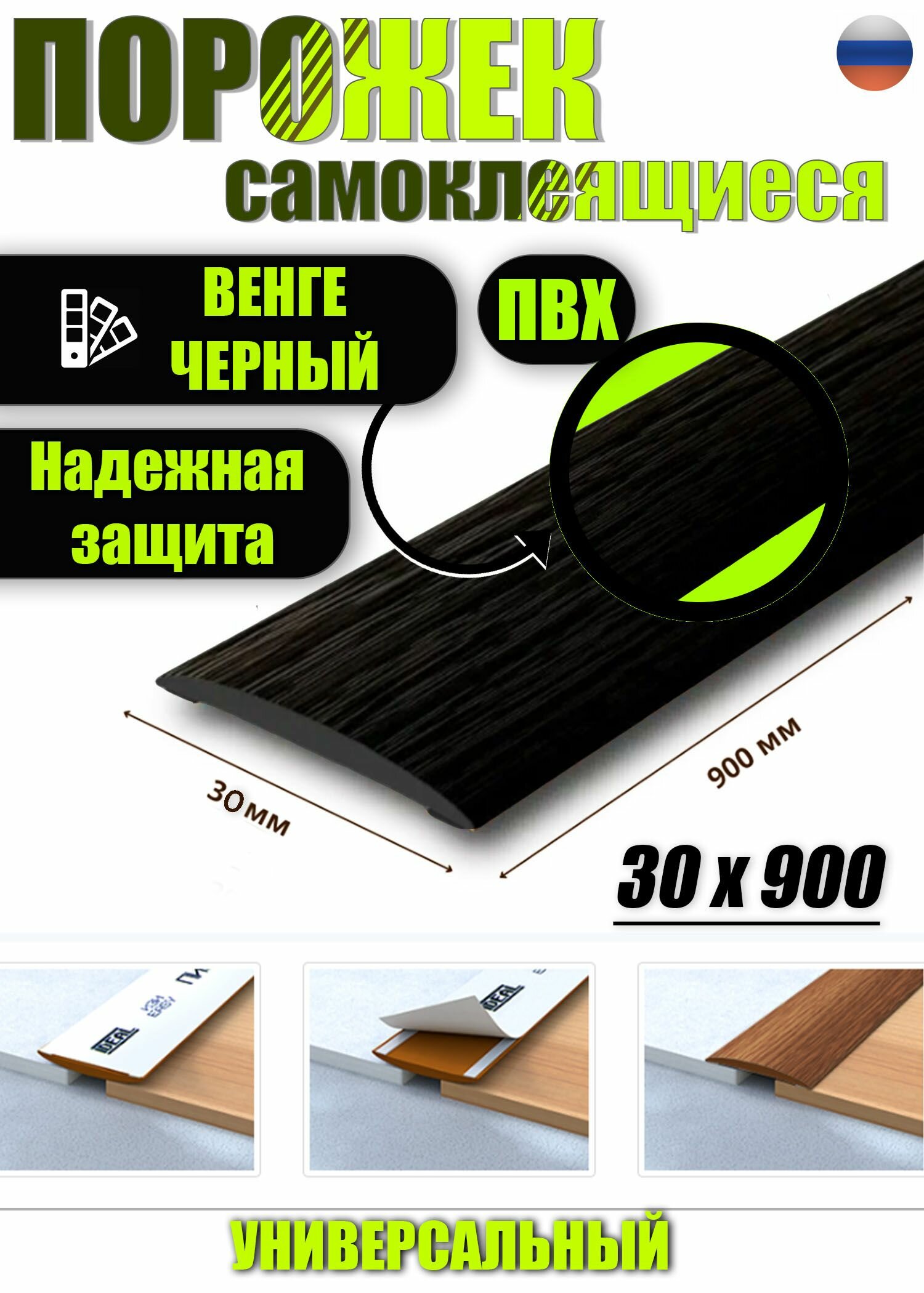 СохранитьПорог самоклеящийся из пластика 3шт. ИЗИ 30.900.302 для напольных покрытий; Венге черный 30 х 900 мм интересное: