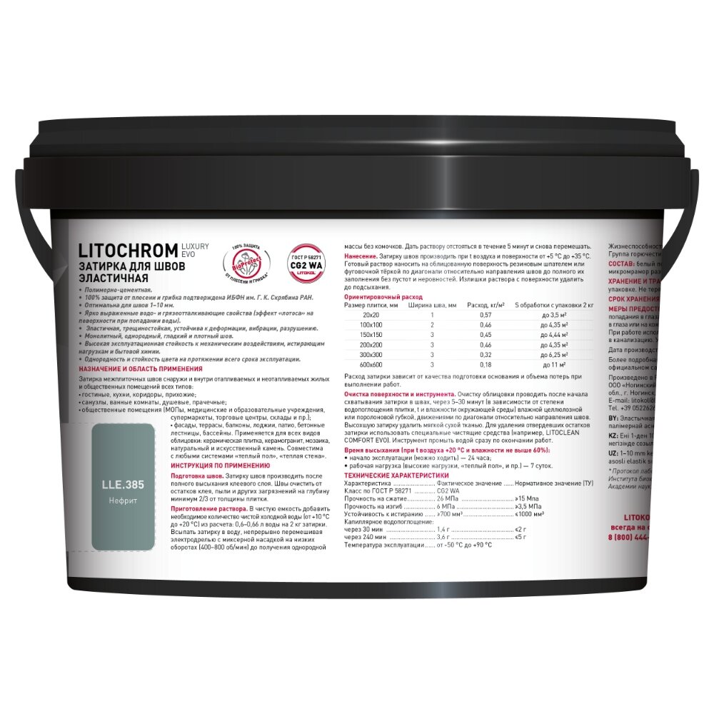 СохранитьЗатирка эластичная цементно-полимерная Litokol Litochrom Luxury EVO 1-10мм (2кг) LLE.385 нефрит интересное: