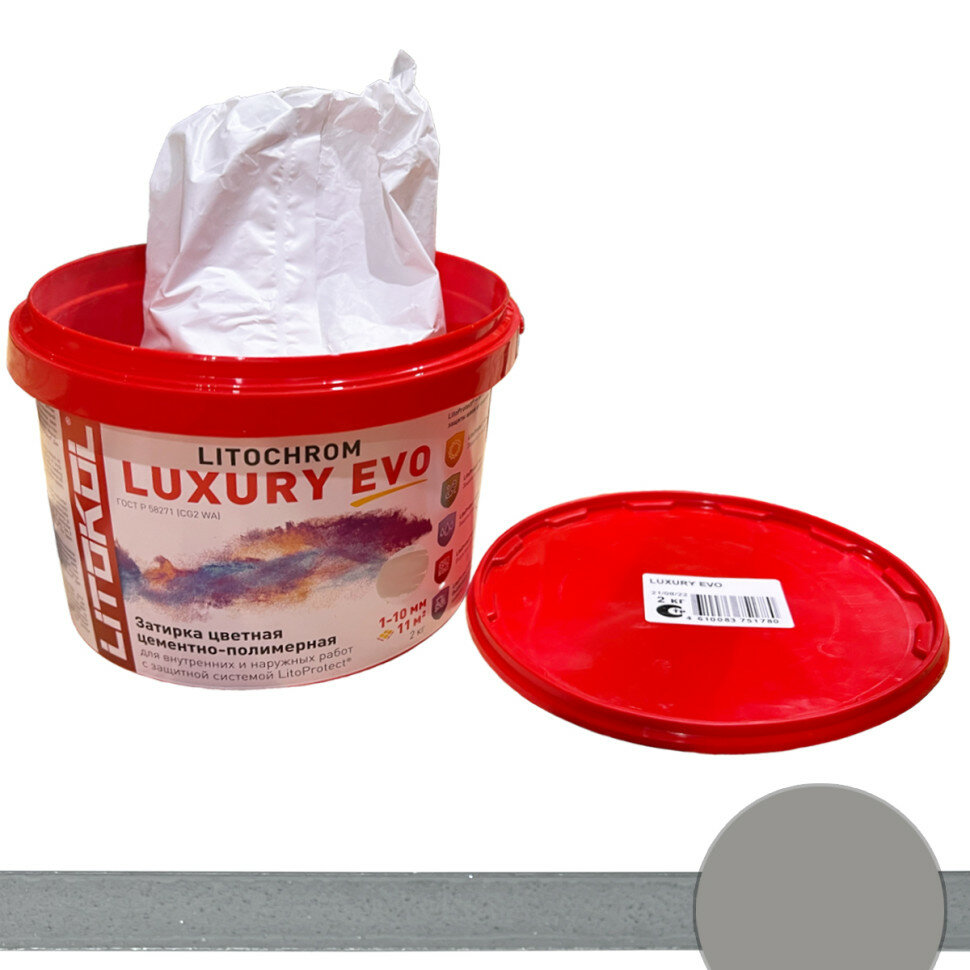 Затирка для плитки, Цементно-полимерная LITOCHROM LUXURY EVO LLE.110, Стальной серый, 2 кг