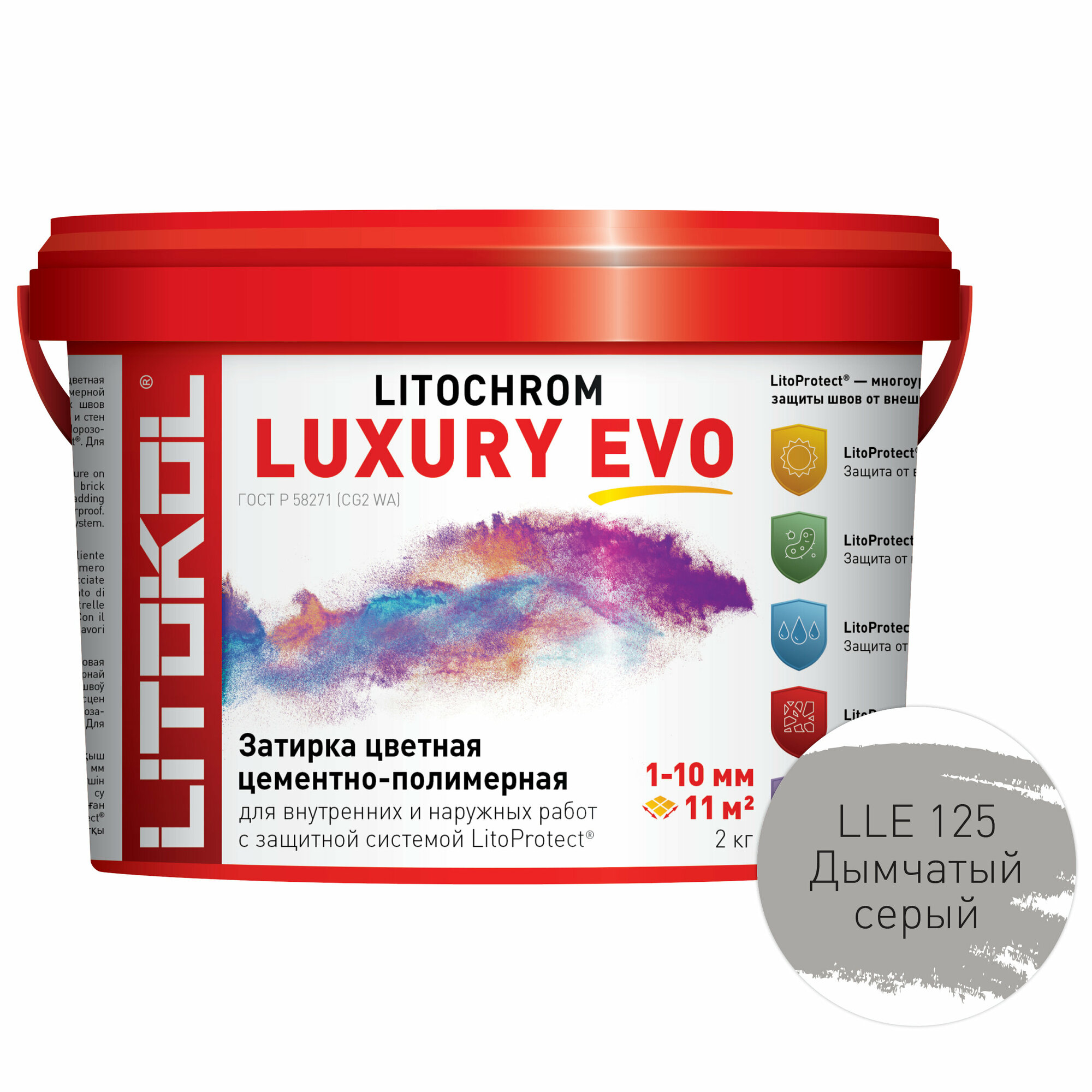 Затирка для плитки, Цементно-полимерная LITOCHROM LUXURY EVO LLE.125, Дымчатый серый, 2 кг