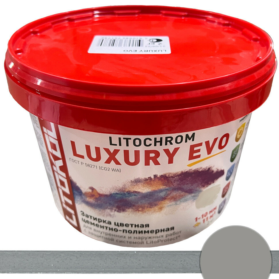 Затирка цементно-полимерная Litokol Litochrom Luxury EVO дымчатая серая 2 кг