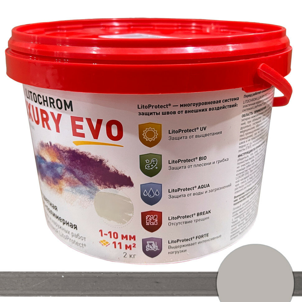 Затирка для плитки, Цементно-полимерная LITOCHROM LUXURY EVO LLE.105, Серебристо-серый, 2 кг