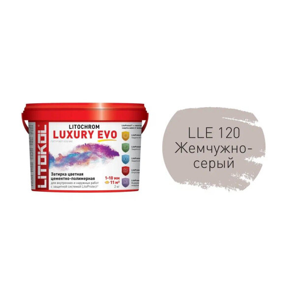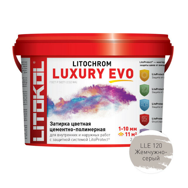 Затирка для плитки, Цементно-полимерная LITOCHROM LUXURY EVO LLE.120, Жемчужно-серый, 2 кг