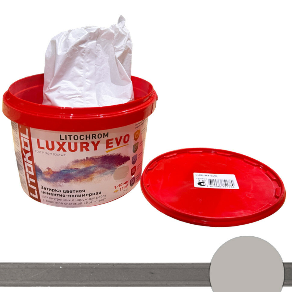 Затирка для плитки, Цементно-полимерная LITOCHROM LUXURY EVO LLE.115, Светло-серый, 2 кг