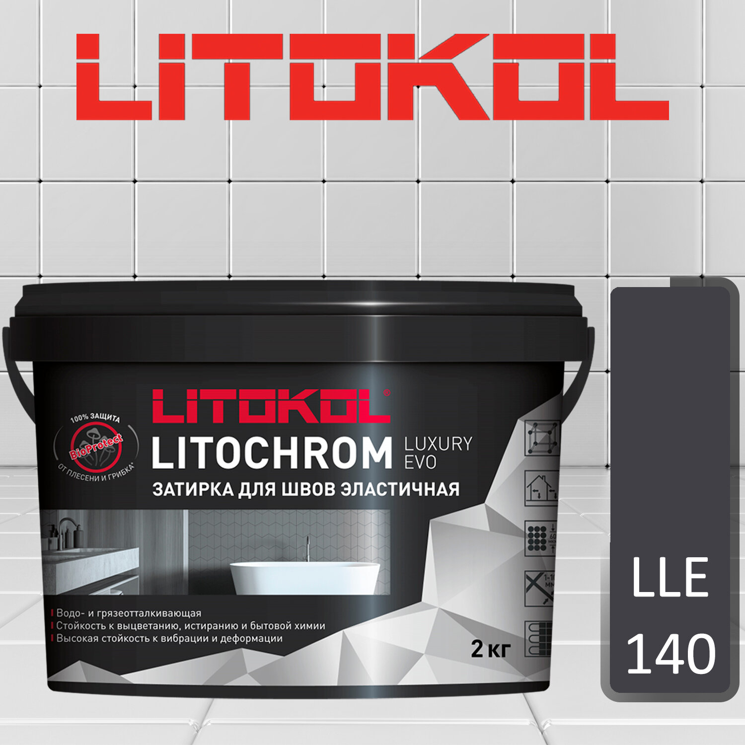 Затирка для плитки, Влагостойкая LITOCHROM 1-6 EVO LE.140, Мокрый асфальт, 2 кг