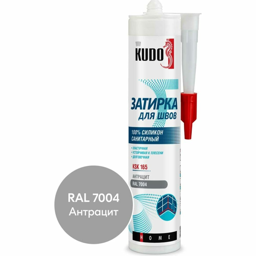 Герметик-затирка силиконовый, санитарный, KUDO HOME, KSK-165, RAL 7004, 280 мл, антрацит