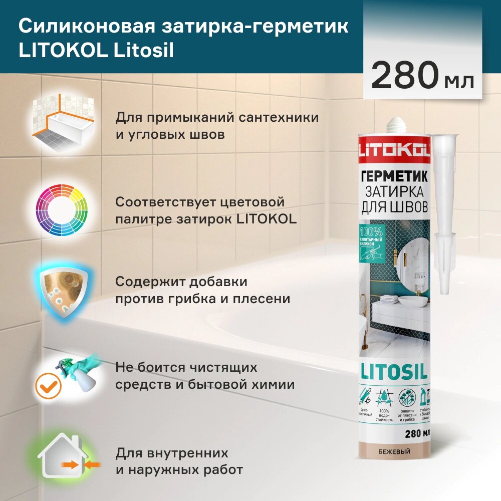 СохранитьГерметик-затирка санитарный силиконовый LITOKOL LITOSIL Серый 280 мл интересное: