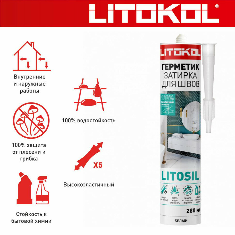 Ниже Вы можете прочитать отзывы на Высокоэластичный силиконовый герметик-затирка LITOKOL litosil, ознакомится с подробными характеристиками, посмотреть интересные обзоры и фотографии на Высокоэластичный силиконовый герметик-затирка LITOKOL litosil.