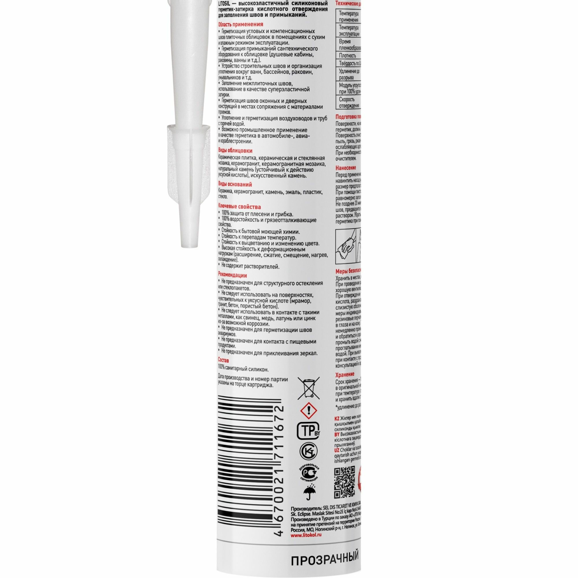 СохранитьLITOSIL прозрачный Высокоэластичный санитарный силиконовый герметик-затирка для влажных помещений 28 интересное: