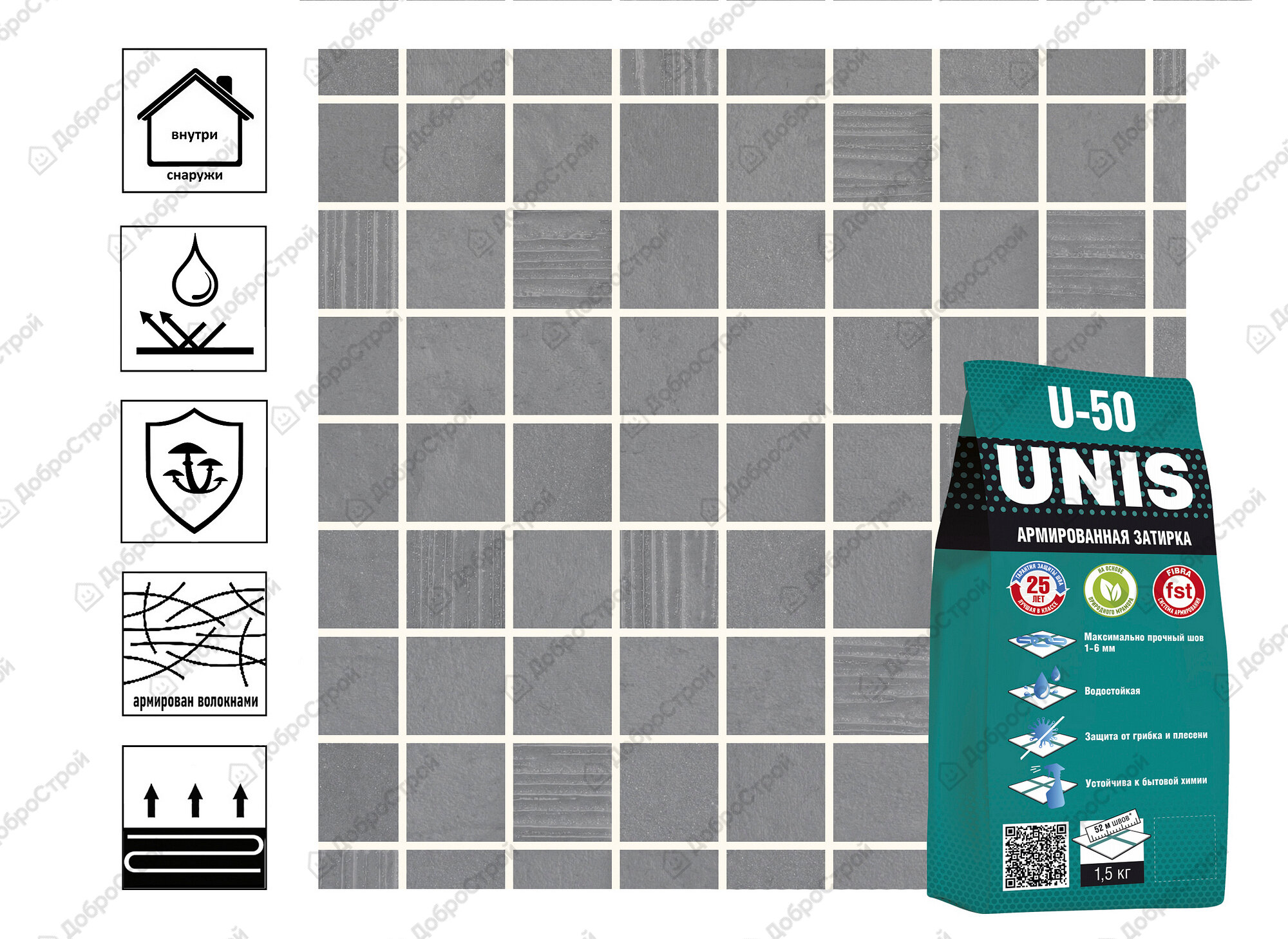 Затирка цементная UNIS U-50 пепельный С16 1,5кг