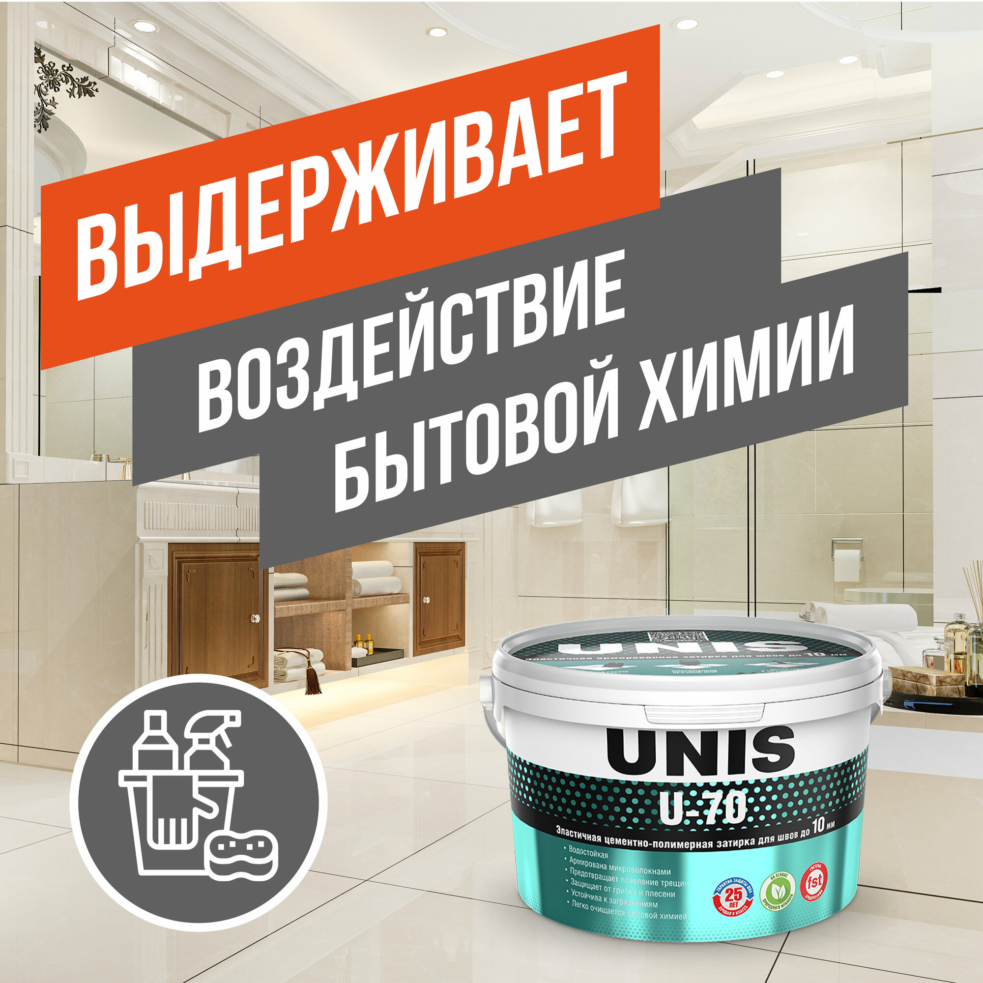 Затирка для плитки эластичная UNIS U-70 2 кг серебро С12/ Цементная армированная с защитой от грибка и плесени