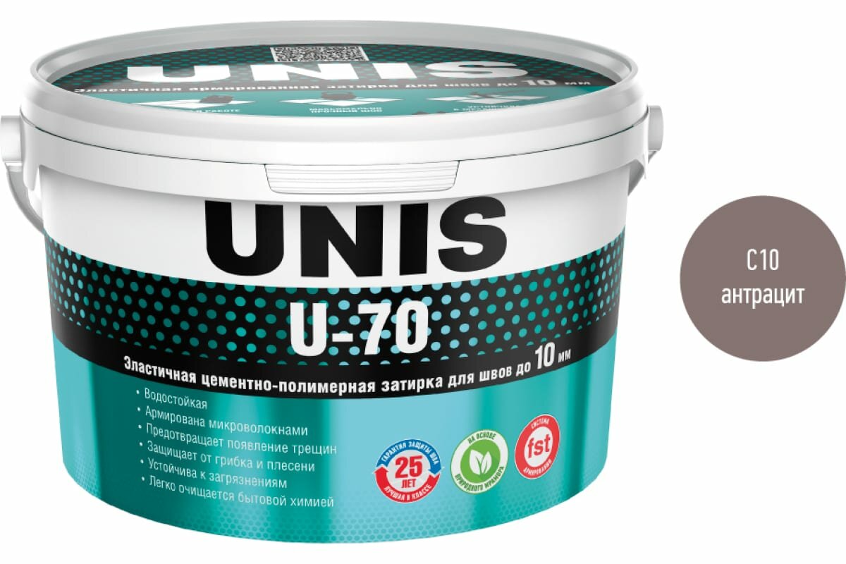 Затирка для плитки эластичная UNIS U-70 2 кг асфальт С13/ Цементная армированная с защитой от грибка и плесени