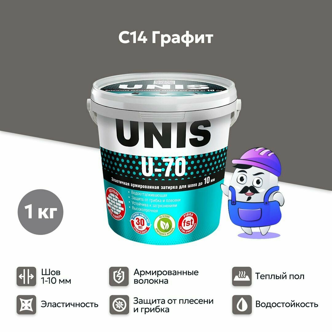 Затирка цементно-полимерная Unis U-70 С14 графит 2 кг